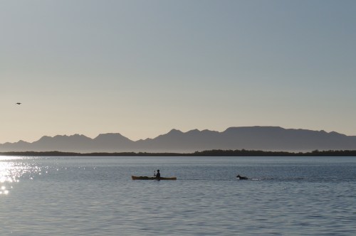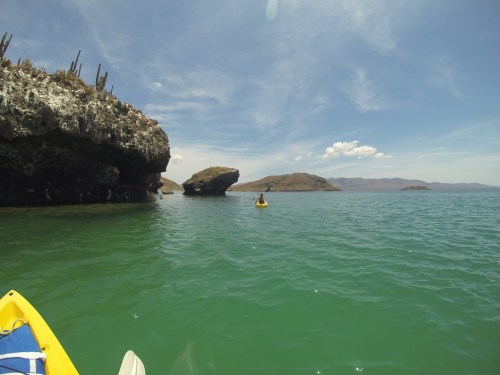 The next two days were spent in complete bliss at this wonderful beach. The restaurant served us dirt cheap and ultra-delicious huevos rancheros (and yes, we went multiple times, being the gluttons that we are). We also met another American living in his trailer down at the beach. His name was John, but you can pretty much call him Myron 2.0, minus the rum. After chatting with him for a while (mostly about his solar energy setup once he'd found out that Alex used to work in solar) he invited us to use his sea kayaks for free, a chance we gladly jumped at. We had a great time just paddling around the little islands offshore. Highlights included communing with the pelicans and watching whole schools of fish jump out of the water in unison.