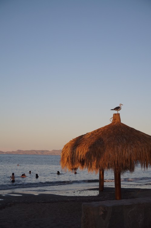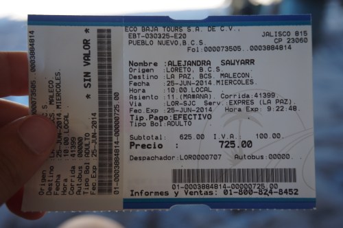After checking out the map for the coming days, we realized that we had another nasty stretch of road ahead of us. The next city was Loreto, more than 100 kilometers down the coast, with not a single town in between. Even worse, the road hugged beautiful Bahía de Concepción for only the next 20 kilometers or so, before veering up and in through more brutal desert. Oh, and headwind. Did we really want to put ourselves through the wringer again, with temperatures in the 100 degree range, barren landscapes, and next to no food or water supply? Probably not. So we waited at the side of the road, stopped a bus, and threw in the proverbial towel. Bags off the bikes, bikes squeezed under the bus, and butts plopped down in the nice air conditioned seats. Desert, you win.