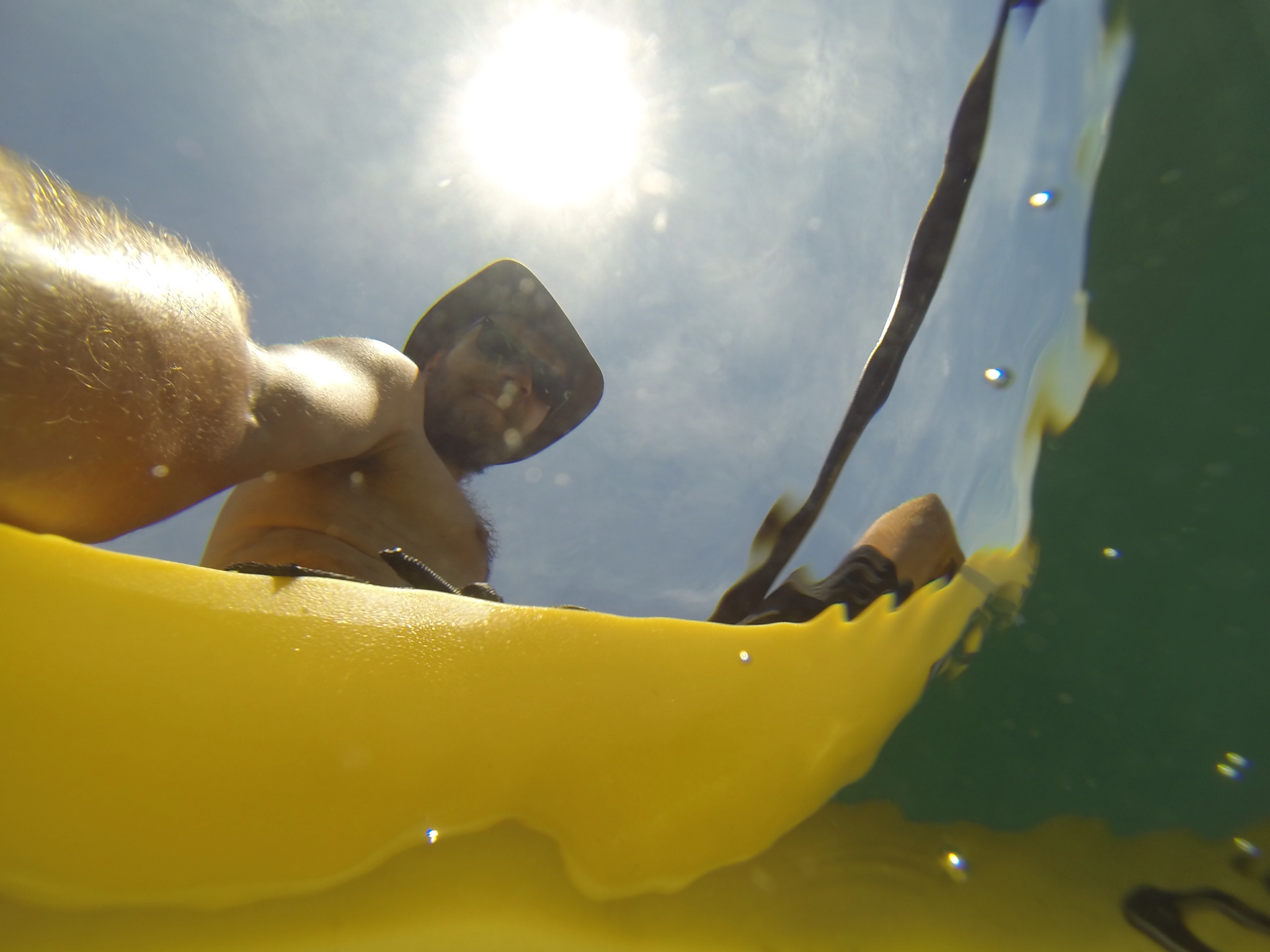 After spending two days in Santa Rosalía, we decided to push on to one of the many beaches south of town. Only a short ride away was Playa San Lucas, a blink-and-you'll-miss-it beach right off the highway. When we rode up, we were a bit discouraged to find that the seaside was already crowded with RVs and trailers, so we reluctantly set up camp twenty feet away from the beach (yes, life is hard). We dropped our bikes, set up the tent, and made a beeline for the water, which was warm and welcoming. That was exactly the point when the trip went from sweaty endeavor to luxurious vacation. But we hadn't been in the water for five minutes before we heard a man on the beach yelling to watch out for stingrays. We didn't want to pull a Steve Irwin, so heading back to shore seemed like a good idea.