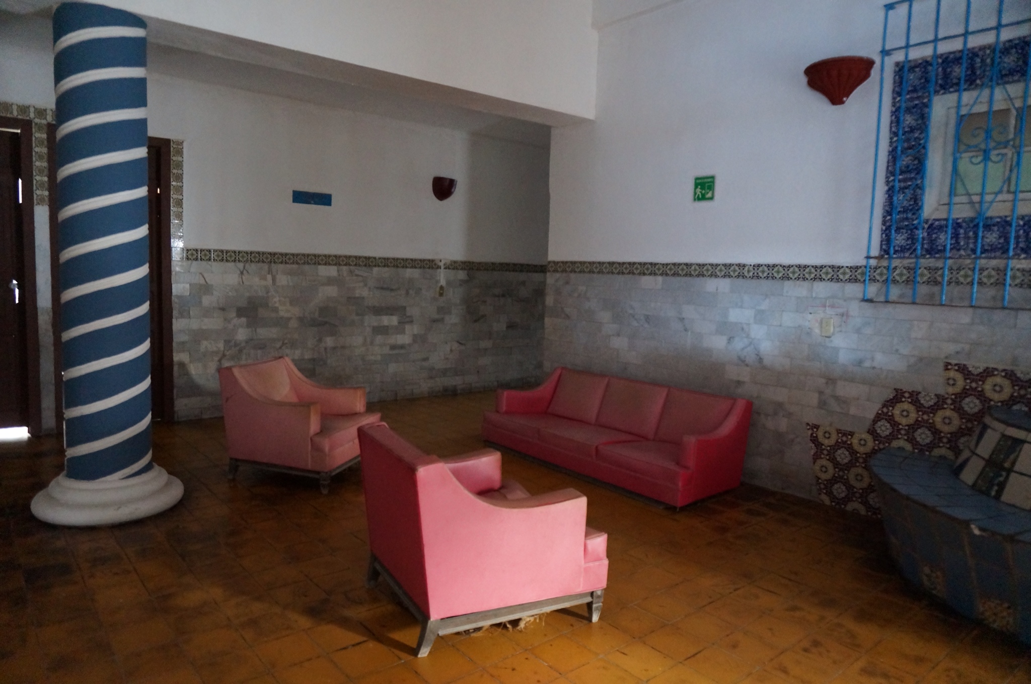 When we got into Mazatlan around noon the following day we were more than ready to check into a hotel for the night. We had already scouted out our options, and settled on Hotel Belmar, an enormous historic curiosity that had hosted everyone from Erroll Flynn to John Wayne back in its heyday. Belmar was the first waterfront hotel in Mazatlan, built in the 1920s, and parts of it definitely haven’t been updated since then. The bones are grandiose, but it has fallen into serious disrepair with the passing years. Regardless, it was well worth the price, given that most of the interior felt like a museum that we were free to explore to our heart’s content. We must have spent hours wandering the grounds of that rundown place, where creepy corners and deserted relics abound.