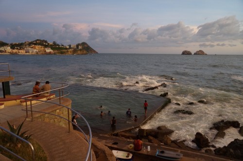 Seatless and confused, we were crammed into the general seating area/cafeteria, which we would share with 25 or so truckers and maybe 100 others who had not bought seats. Before the ferry pulled away from the dock, the truckers had already started to accumulate piles of empty Bud Lights. To make the space even more enjoyable, crappy movies blared from the TV all night. Did they really have to torture us with Grown Ups 2? Questionable movie choices aside, there was one upside to the general seating area. The close quarters meant that we got to know a family from Morelia, who were returning from a yearlong stint as visiting researchers at UC Berkeley. Spending a few hours chatting with Erick, Lorena and their kids made the crossing a little more bearable. Erick is a cyclist himself, and had some great insights into route planning for the mainland. Lorena studies local indigenous movements, and helped us to understand some of the basis for the ongoing conflicts in Michoacan. All in all, a much more pleasant way to spend our first couple of hours than watching Grown Ups 2!