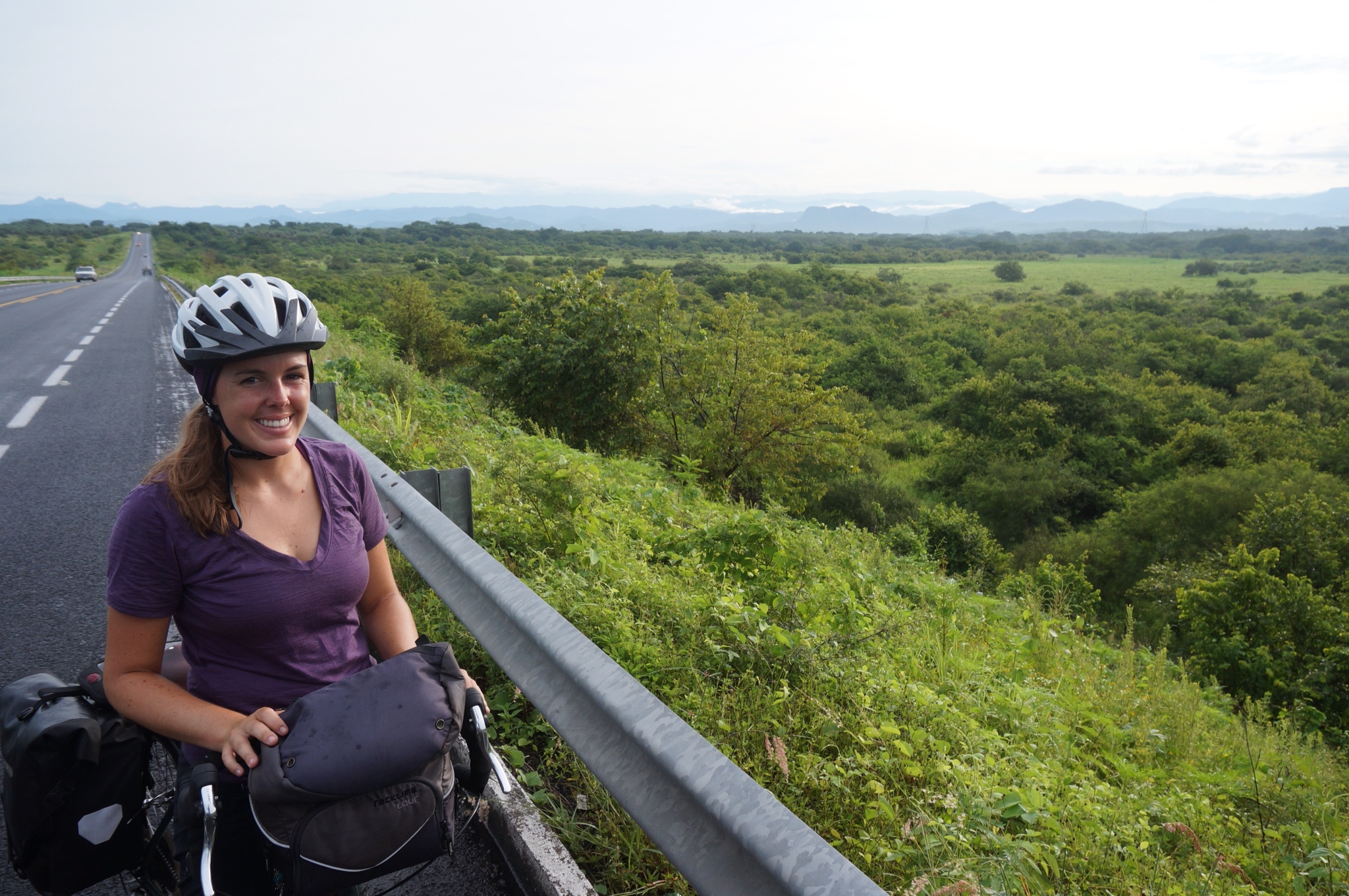 The next morning we were out of there early, making a beeline for the highway and eager to avoid any further interactions with the local teenagers. Many areas in Mexico have two highways that run parallel to one another: the libre and the cuota. The libre is the older, free stretch of road, with more towns along the way but little shoulder to speak of. We’re growing quite fond of the cuota, which is the newer road, tolled for vehicles but free-99 for bikes. It also has a great shoulder, and traffic is sparse (presumably because the tolls are not particularly popular). After our long night, the scenery was green and the shoulder was wide, so we were back in good spirits soon enough. But even the best road couldn’t stop disaster from happening: my first flat tire of the trip, after almost four months away from Seattle!