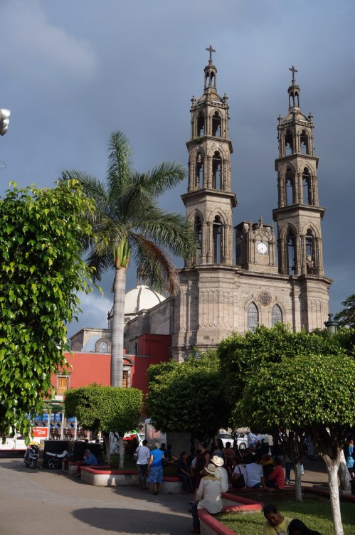 Storm clouds rolling in behind Tepic’s cathedral.