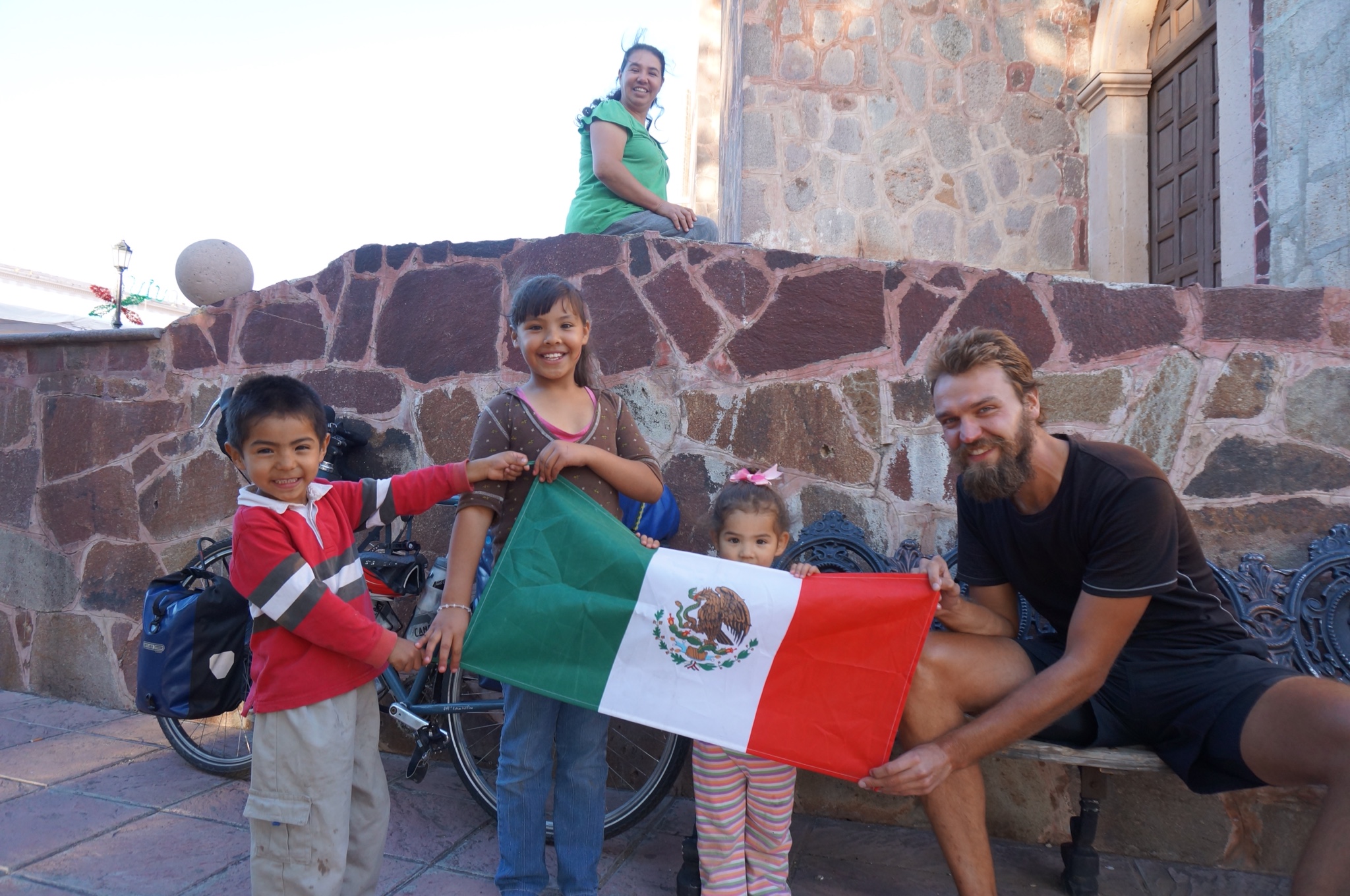 After a few relaxing days in San Miguel de Allende, we parted ways with Arpi and Zita, with them heading south and us heading north. Due to a late start, some headwind, and a few painful ups and downs, we didn’t arrive at our destination until around sunset. The small town of San Diego de la Union was bustling with people in suits, which at first take was pretty odd. We then heard that the state governor was in town (hence the suits) and settled down on a bench to scope out what appeared to be free food being offered in the plaza. Free food! Unfortunately, before we could capitalize on the opportunity, three little kids swarmed us and started asking questions about our bikes, our trip, and my height. The middle kid, a four year old boy, kept standing at my feet with a huge grin on his face, emitting a high-pitched squeal, and running away as fast as he could screaming with laughter – only to circle back thirty seconds later to begin again. Alex asked the kids why they were so excited and after receiving an answer she erupted in laughter herself. Apparently the kids thought I was Santa Claus! Looks like the scruffy beard is finally paying off.