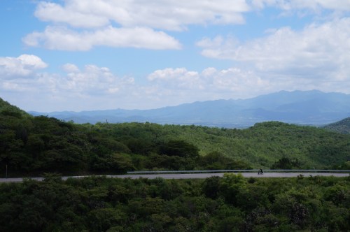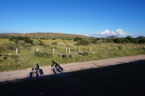 The real hammer awaited us the next morning. Leaving Villa de Zaragoza, we merged onto Highway 70 east out of San Luis Potosi, a merciless road of seemingly endless ascents. Climbing 2,000 feet in one clean swoop is already quite a tall order, but it was exacerbated by the fact that we had slept poorly the previous night. It turned out that a cricket had taken up residence in our little gazebo basement, hiding behind the riot shields. The room was circular, which basically meant that we ended up sleeping in a cricket amphitheater. Alex likens it to an echoey car alarm going off all night long. While the residual effects of the cricket concert made that 2,000 foot climb not so great, at least the view was priceless, as was the glorious 25 kilometers of straight downhill after our Herculean feat. A tiny town called Santa Catarina marked the end of our day. Sitting in the shade and watching pigs, donkeys, and cows roam the streets made for some less-noisy entertainment that night.