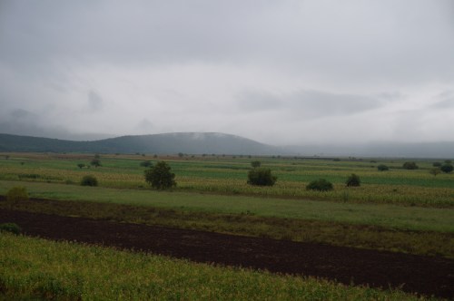 Misty morning fields.