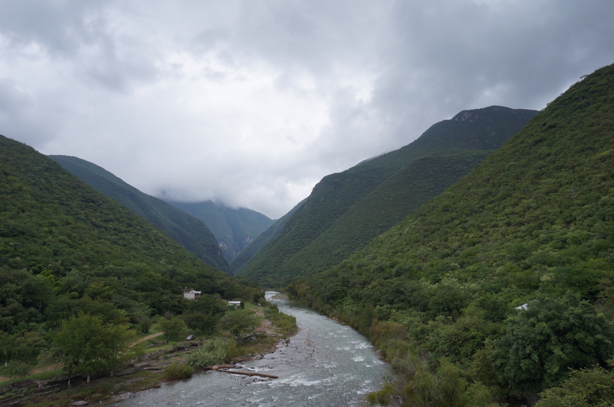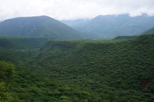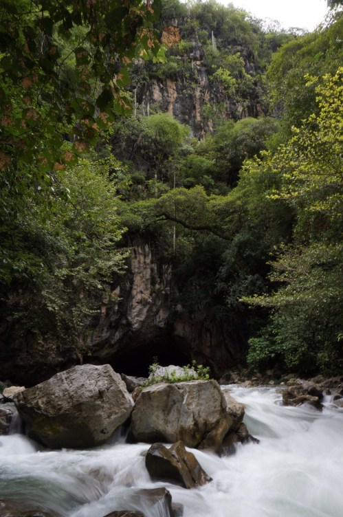 Along more mountainous roads we made our way to Jalpan de Serra, a town located in the heart of the Sierra Gorda. Predictably, when riding in a sierra, the riding is hilly. Mountainous, even. The good thing is that this part of the country is all about la naturaleza, so opportunities for hiking, kayaking, and camping abound. The day was rainy and grey, and even though it was nice to not be uncomfortably hot while riding, the opposite with us being soaked to our bones wasn’t that great either. But it was green…oh, so green. Which made for some absolutely stunning riding.