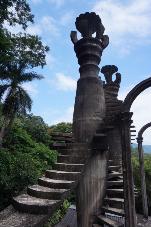 Later that week, Rodrigo took a day off from working on the hotel to drive us to the nearby town of Xilitla. We had initially planned to visit by bike, but a look at the elevation map quickly put those plans to rest. Instead we saved our knees and had a whole afternoon to explore Las Pozas, an area made famous by the eccentric British aristocrat, art patron, orchid enthusiast, and all-around weird guy Sir Edward James. Over the decades, Sir Edward James (or Uncle Eddie, as we like to call him) built his personal “Garden of Eden” in the jungles of Xilitla. Uncle Eddie’s obsession with orchids led him to model many of his buildings and sculptures after the flower, making for some truly strange concrete formations scattered throughout Las Pozas. After he died in 1984 the area was designated a protected area, whose fame has taken the town of Xilitla from tiny mountain village to bustling tourist hotspot. The stunning mix of weathered concrete sculptures, surreal architecture, and stairways to nowhere left us awestruck. Peter Pan would have liked it, too.