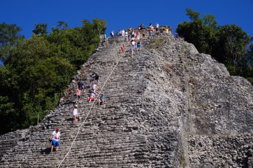 When there is a rope, people will use it. We found it pretty easy to walk up and down the pyramid unassisted, to the horror of the butt-scooters.