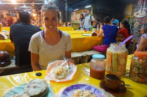 Once we regained consciousness, we realized that we had it pretty good. This was exactly what we were looking for, a friendly town with a laid back vibe, not another tourist in sight, right up our alley. Two nights there helped us recharge our depleted batteries and we savored every second of it. And sure, cheap pupusas at the market stands definitely helped us with our recovery. Pupusas are for El Salvador what tacos are for Mexico: little hot pockets of corn and love filled with beans, cheese and meat. And at $0.25 each, those pupusas really were a godsend. Mhmmmm. Since everybody eats them and every place offers them, you can seriously cut down on your food spending by committing to a breakfast, lunch, and dinner menu of all pupusas, all the time.