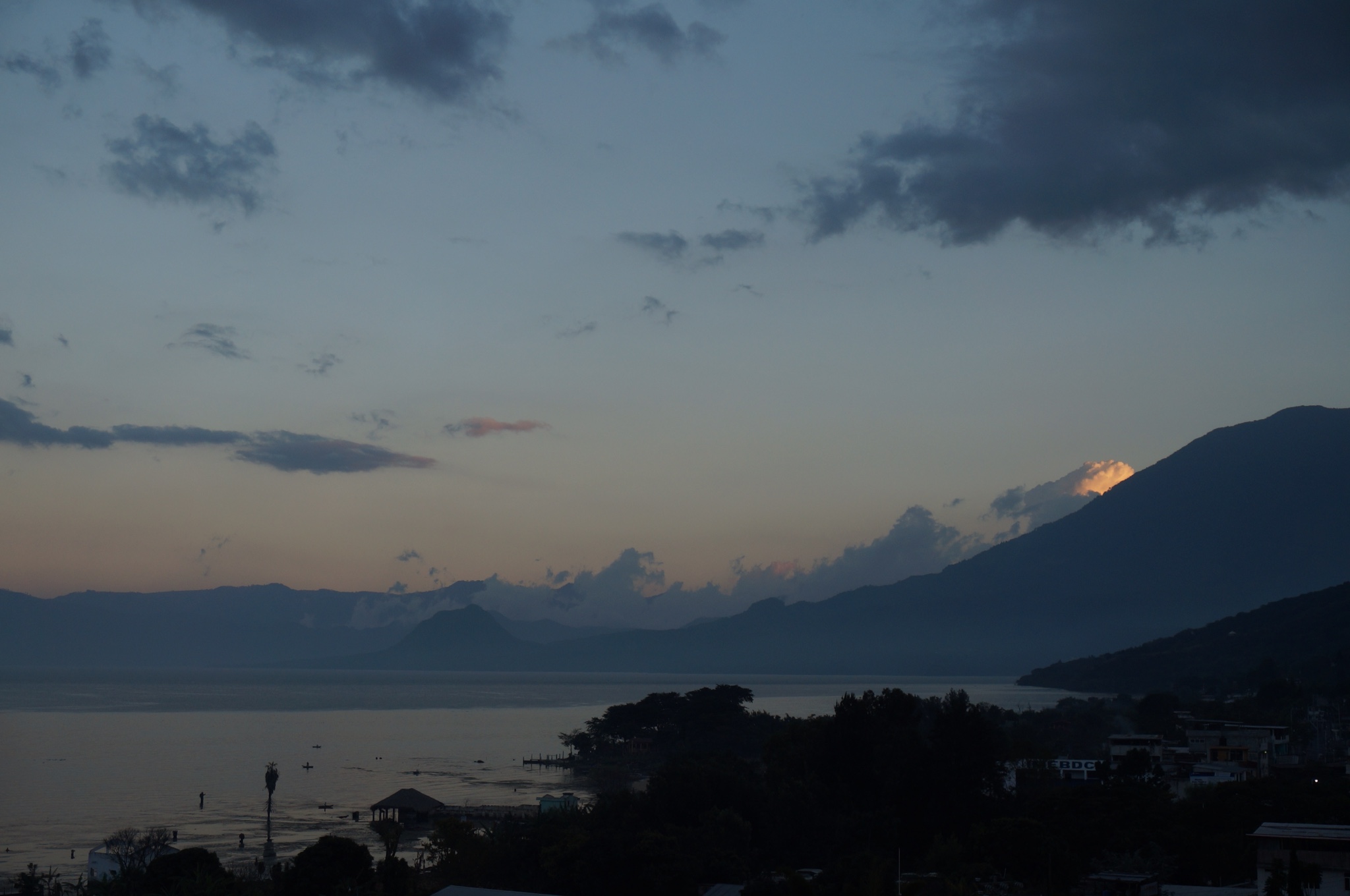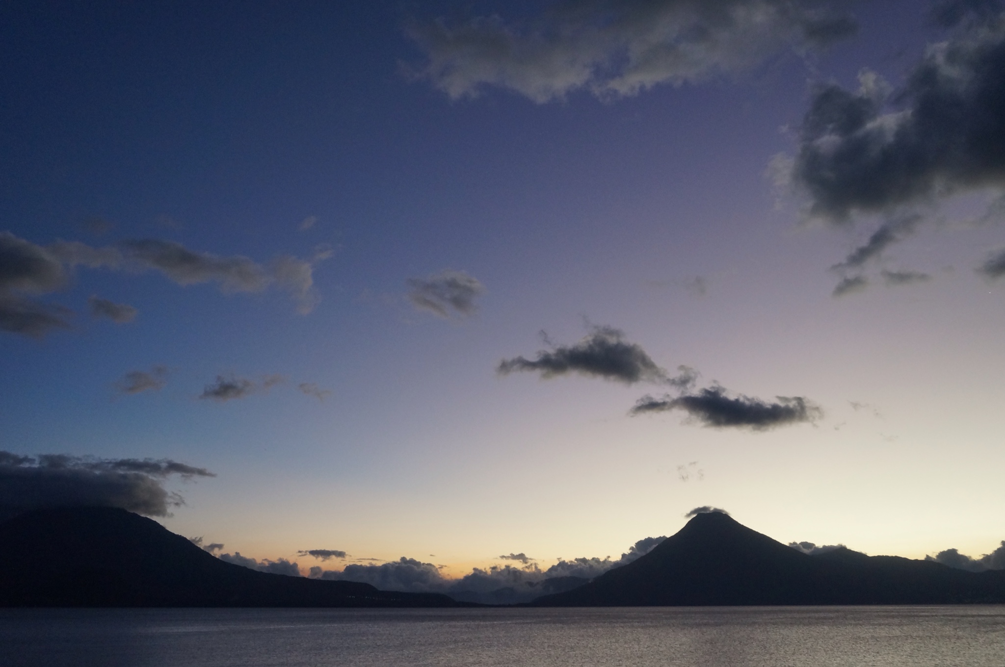 Completely exhausted, we dragged ourselves back to the dock and hopped another lancha back to Pana. We spent yet another much-needed rest day pretty much just looking at the view. (Note from Alex: See below for resultant volcano porn.) During this time we had our second encounter with the mysterious Scarfman, whom we had first spotted in Cobán. He was still dressed all in black, with a red checkered scarf elaborately twisted around his neck. This time around he was staying at the same hotel we were, and when I overheard a conversation he was having with his wife I realized that they were German. While I was fixing up the bikes he came over and started a little chat with me. Like many other people we’ve met, he voiced his concern about the big, fat ding I have in my bike frame and we talked a little more about our travels. Even though I didn’t know it yet, this wouldn’t be the last we would see of Scarfman and his wife, so stay tuned for part three.