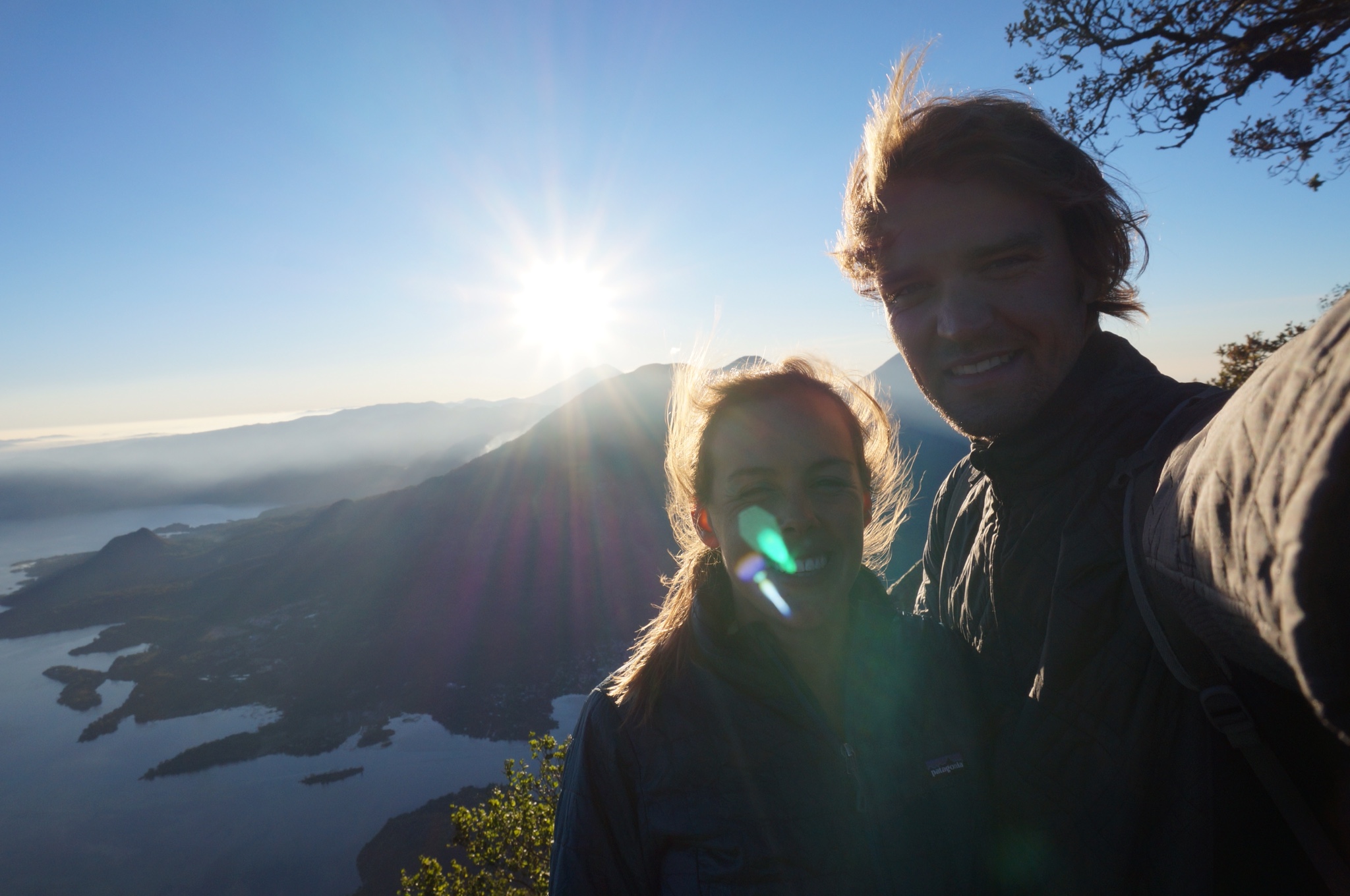 At 3:45AM the alarm sounded and, bleary-eyed, we stumbled out of our room to meet our guide. He was a 73 year old farmer named Pedro, living in San Pedro and guiding us up Volcan San Pedro. Easy to remember! While the rest of the world seemed to be deep asleep, we tried to match Pedro’s pace as he marched us up the steep sides of the volcano in total darkness, our sweat pouring even at this ungodly hour. His canine buddy joined us, a friendly street mutt who reportedly accompanies Pedro on most of his hikes. (Note from Alex: According to Pedro, all of the other dogs are lazy. I think it’s more like this dog has figured out that tourists bring snacks to the top of the volcano.) We reached the summit at around 7:00AM, climbing to 3,020 meters above sea level. Pedro beat us to the top and greeted us there with a handshake for me, a kiss for Alex, and a hearty “Bienvenidos a Volcán San Pedro! Felicidades!” And what an incredible view it was.