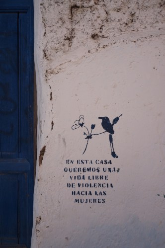 Most houses in Suchitoto had this bird painted outside their door: “In this house we want a life free from violence against women.”